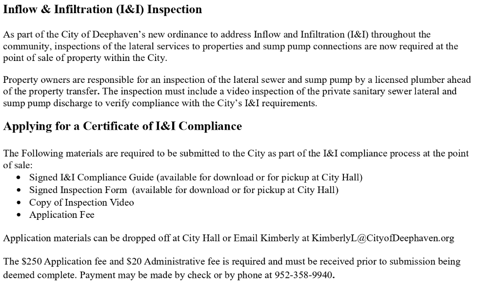 Inflow & Infiltration Certificate of Inflow and Infiltration Compliance Guide Inspection Form Ordinance Lateral Service Contractors